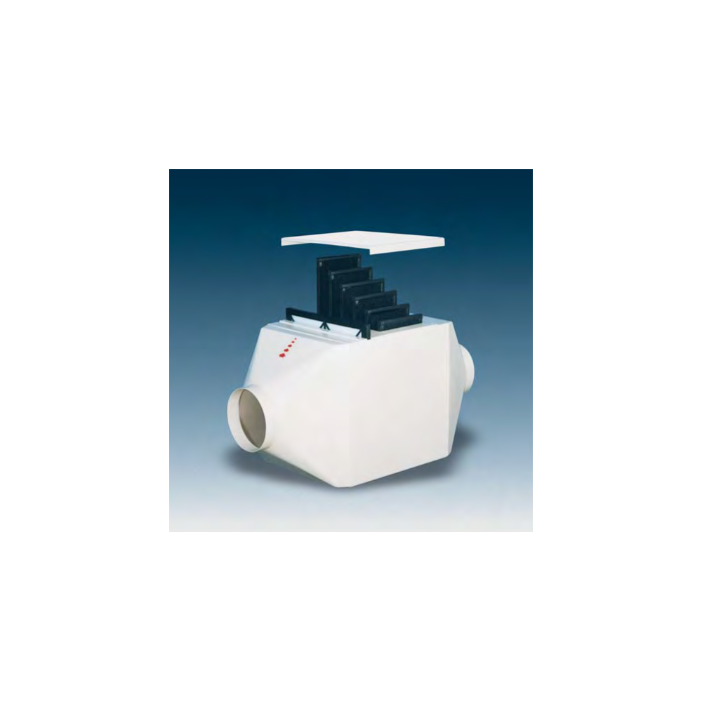 Megnövelt kapacitású aktívszenes szűrőház laboratóriumi és kisipari elszívókhoz. Hatékony szűrés savas vagy oldószergőzökhöz, nem robbanásbiztos kivitelben.