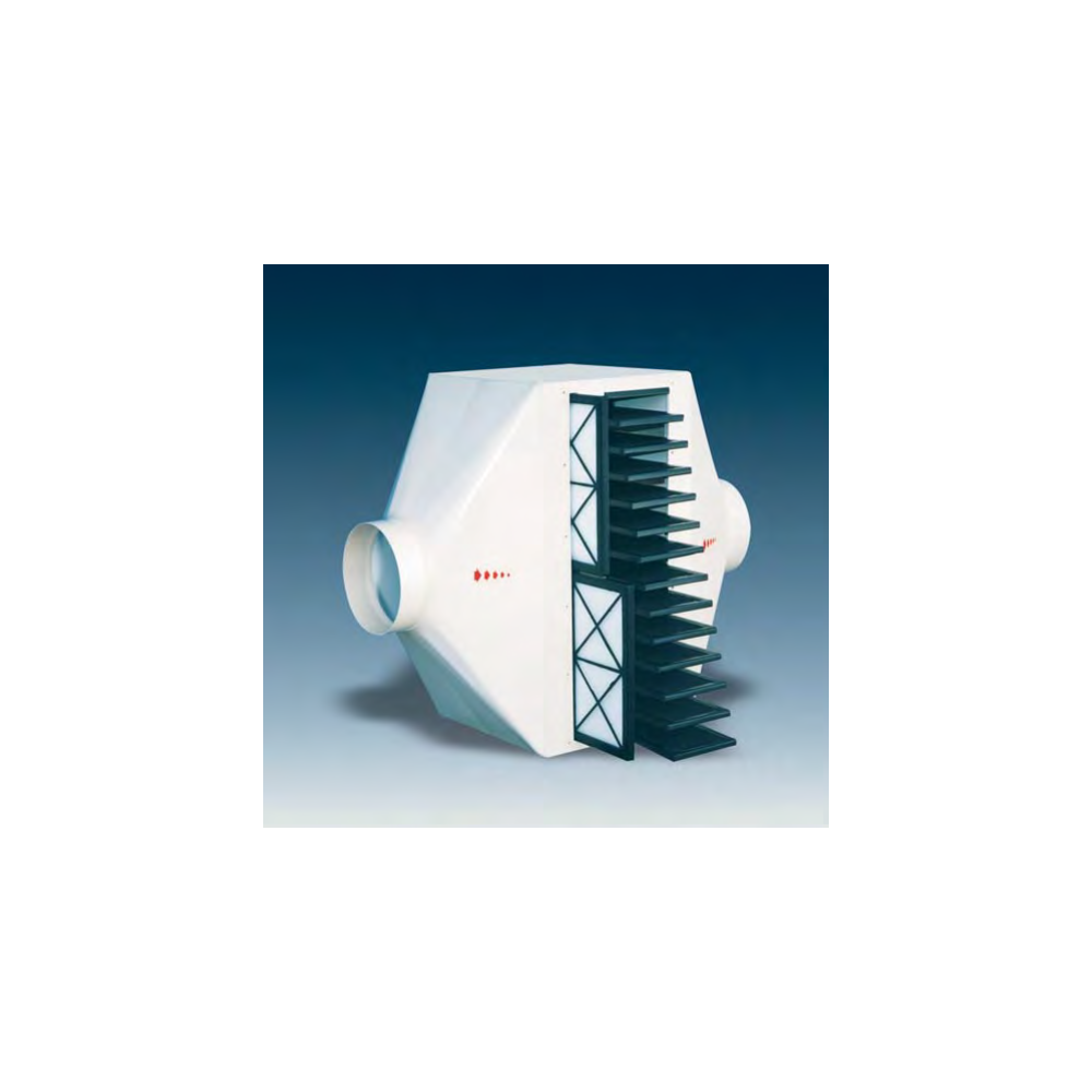 Nagyteljesítményű aktívszenes szűrőház laboratóriumi és ipari légszennyező anyagok hatékony megkötésére. Nem robbanásbiztos kivitel.