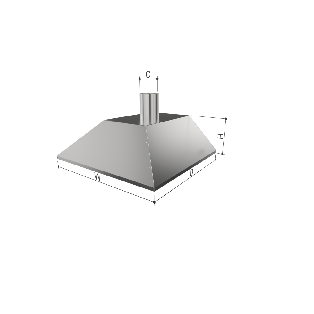 Elszívó ernyő, falra szerelhető rozsdamentes W D H C